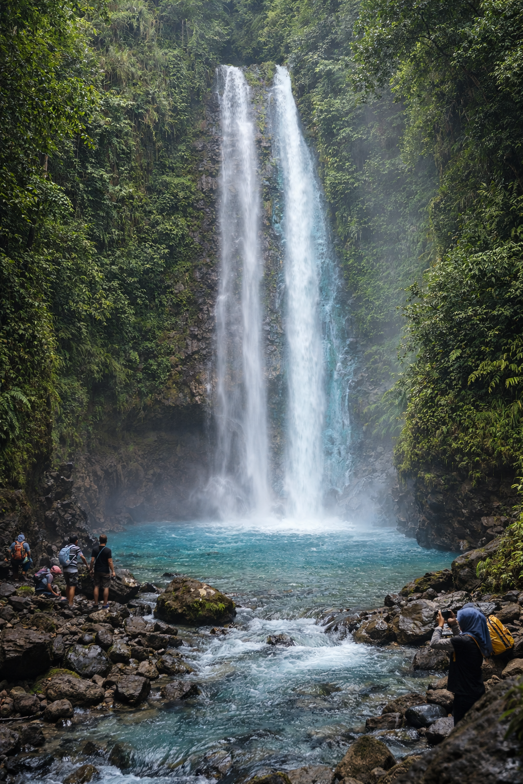 “Setiap akhir pekan jumlah pengunjung bisa dua kali lipat. Banyak yang datang karena penasaran dengan warna air terjunnya,” ujar Ridwan.